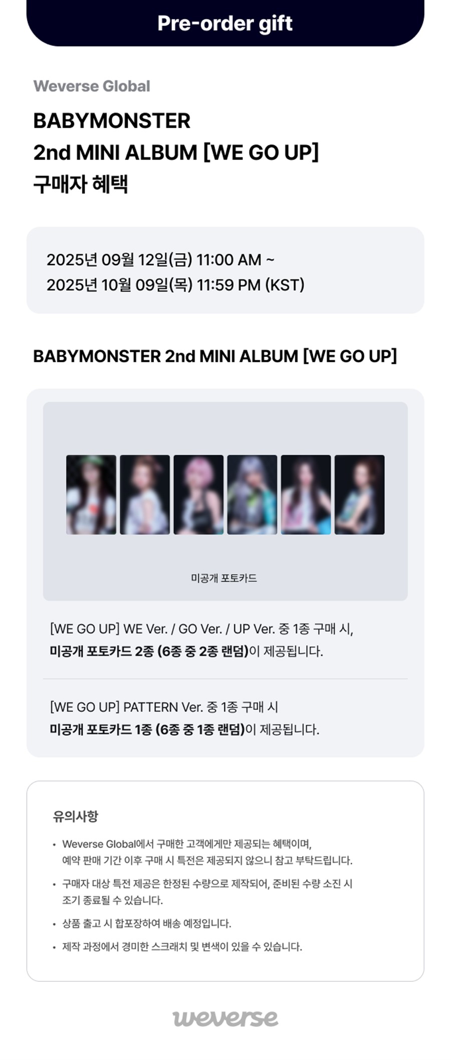 [WEVERSE POB] BABYMONSTER – 2nd MINI ALBUM [WE GO UP] (Set)