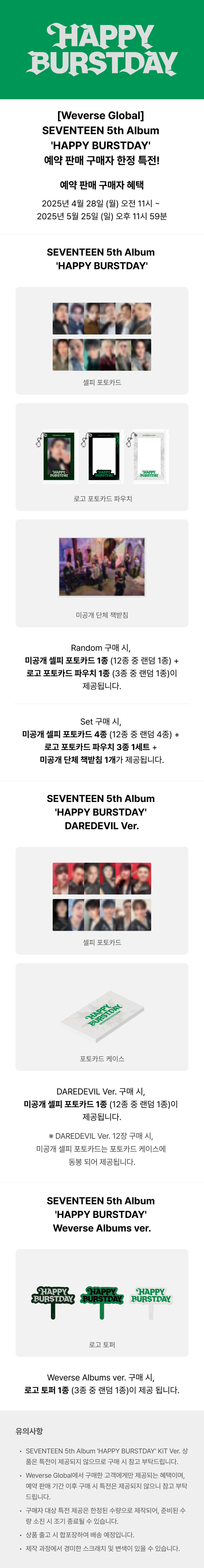 [WEVERSE POB] SEVENTEEN – 5th Album [HAPPY BURSTDAY] (Weverse Albums ver.)